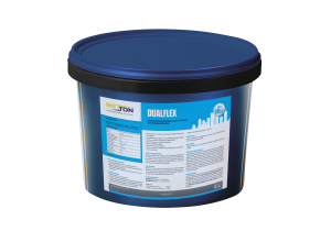 DUALFLEX is a flexible and high strength waterproofing material consisting of bitumen rubber, special cement and fillers.
